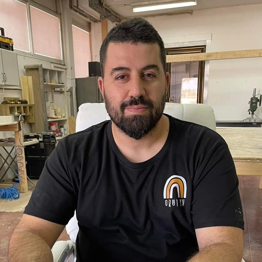 "קוראים לו מור, הוא מקיבוץ ליד בית שאן הוא נגר ועכשיו סיים 300 ימי מילואים!! הוא הגשים לי חלום, שולחן מטבח מסיבי כמו שחלמתי !! תודה על הזכות וכמה טוב לתת פרנסה לאנשים שכמותו. אומנות מעץ מלא, בוצרים, מזוזות, ריהוט ועוד''